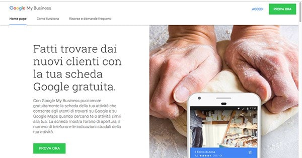 Dopo vai su https://www.google.it/intl/it/business/ per accedere alla schermata principale e clicca su prova ora nell’angolo in alto a destra.