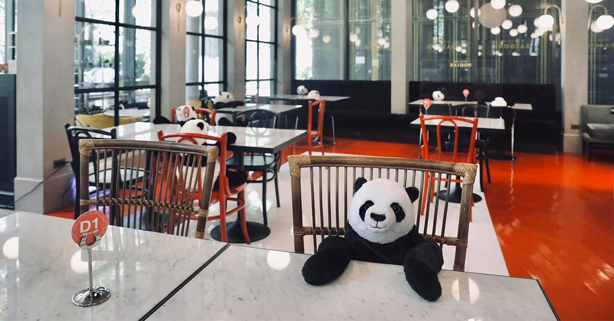 Il primo esempio è arrivato da Parigi, dove un bar ha piazzato coppie di peluche giganti tra un tavolo e l’altro per garantire il rispetto delle regole di distanziamento. Come la Maison Saigon di Bangkok, in Thailandia, che ha optato per il tenero posizionando sulle sedie da occupare dei panda di peluche che agevolano i clienti nel capire dove possono sedersi nel rispetto del distanziamento, cruciale in quelle zone del mondo.